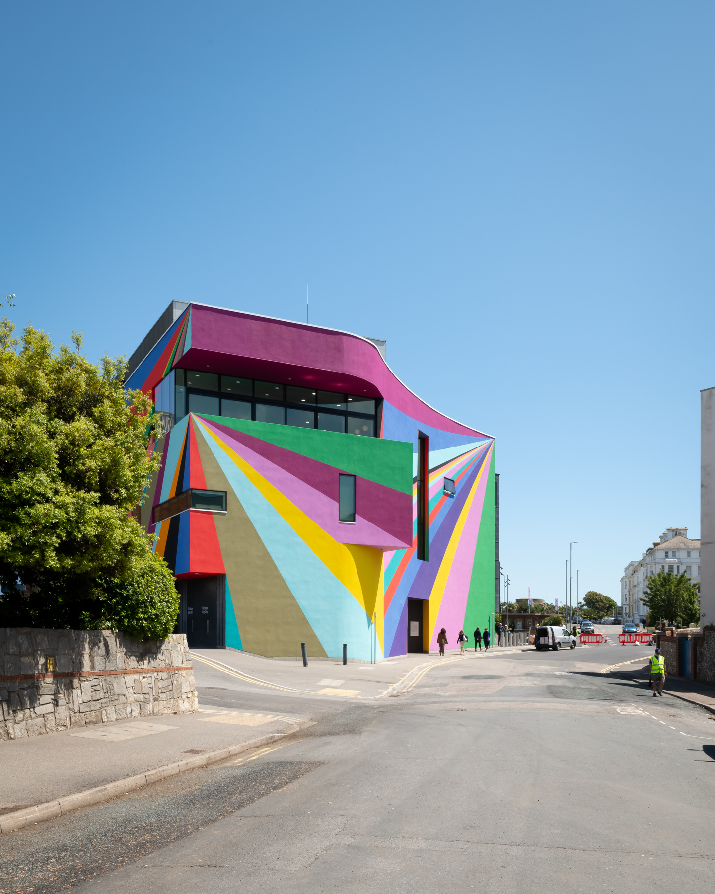Where there isn’t an image, such as with a performance or an interactive work, you often approach a work differently. If the result is an image, you look at something and you use your eyes to interact. Something I found amazing about the reactions from people to the Towner work was that they did somehow prove that most people react quite physically and from different angles to the colour. I think this is mainly possible because it’s not an image. I think that people react to the work in a specific way, or very strongly, because it’s becoming something else. It’s becoming part of the fabric of the town.