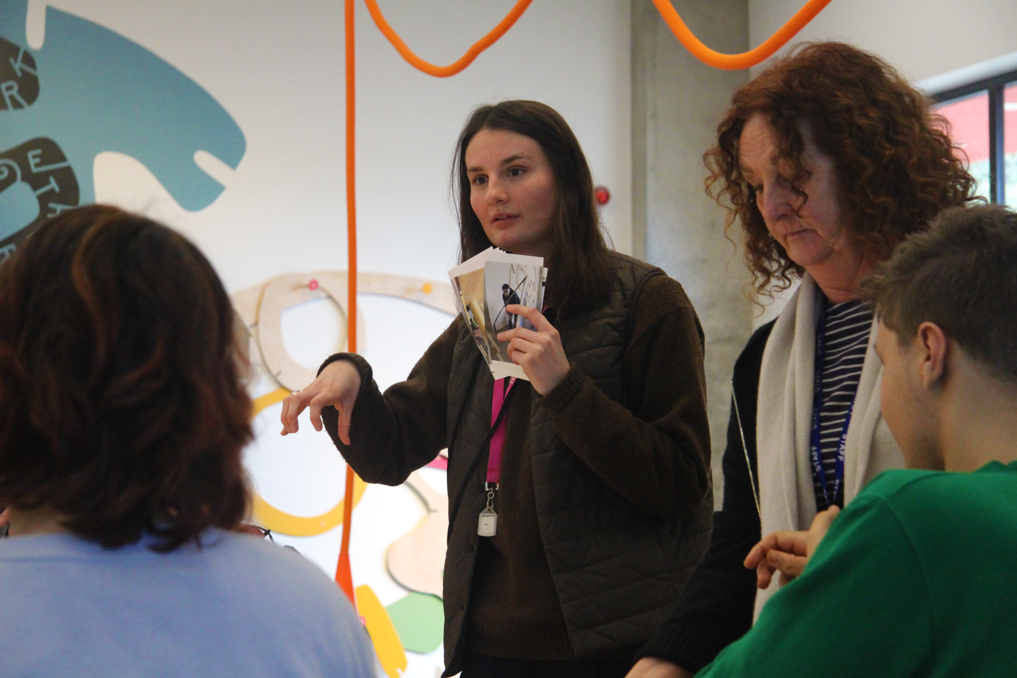 Just ahead of the final weekend of Play Interact Explore, Eva hosted a workshop with Downs View Link college for young people with special educational needs and disabilities, inviting them to make the space their own. Children and adults from Downs View Link were one of four community groups (also including West Rise Junior School, Arts in Mind and the Brighton and Hove Foster Service) who had worked with Leap Then Look to explore, test and develop creative strategies and ideas for the exhibition.