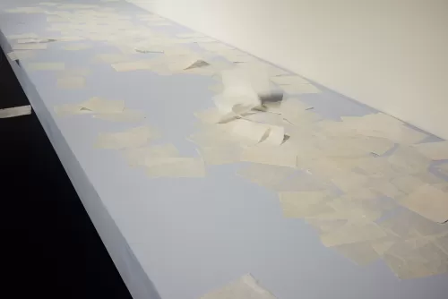 This exhibition by Maria Amidu, the third artist in iniva’s Future Collect Commission partnership programme, centres around 26,778,780 minutes, a new paper and text-based installation and accompanying sound piece which explores the dialogue between paper and writing.