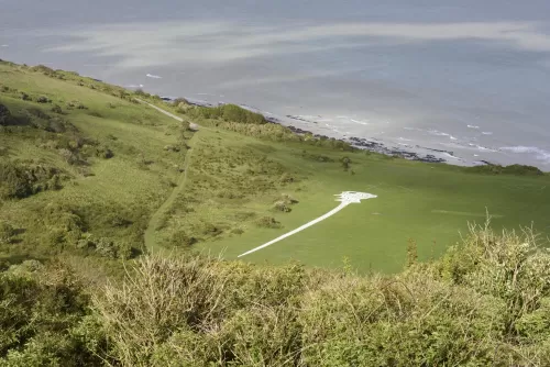 Walking through the town I followed a pattern on the pavement that became the magnified silhouette of a woman’s profile is “a work that can be experienced as an image, a walking path or a narrative". Commissioned as part of England's Creative Coast: Waterfronts.