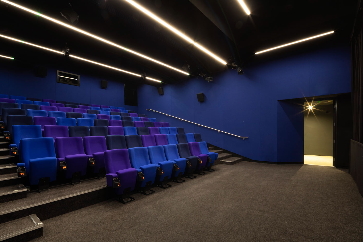 Capacity: 84 cinema-standard upholstered seats on a raked tier