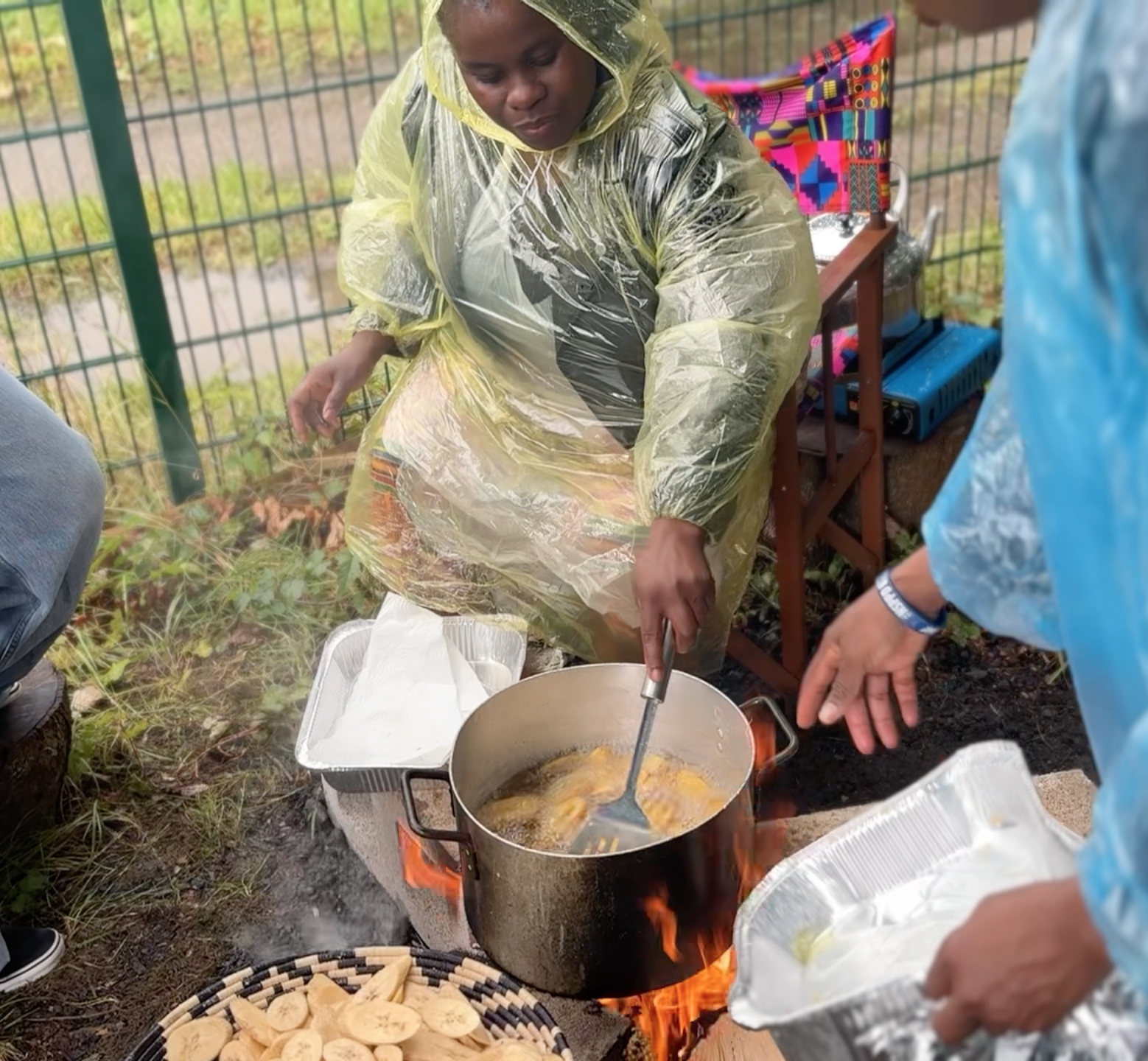 A visit to SAWN Allotments in Oldham for a summer cookout with the community. The cookout features village style cooking of traditional pan African dishes on wood fires in urban Oldham.