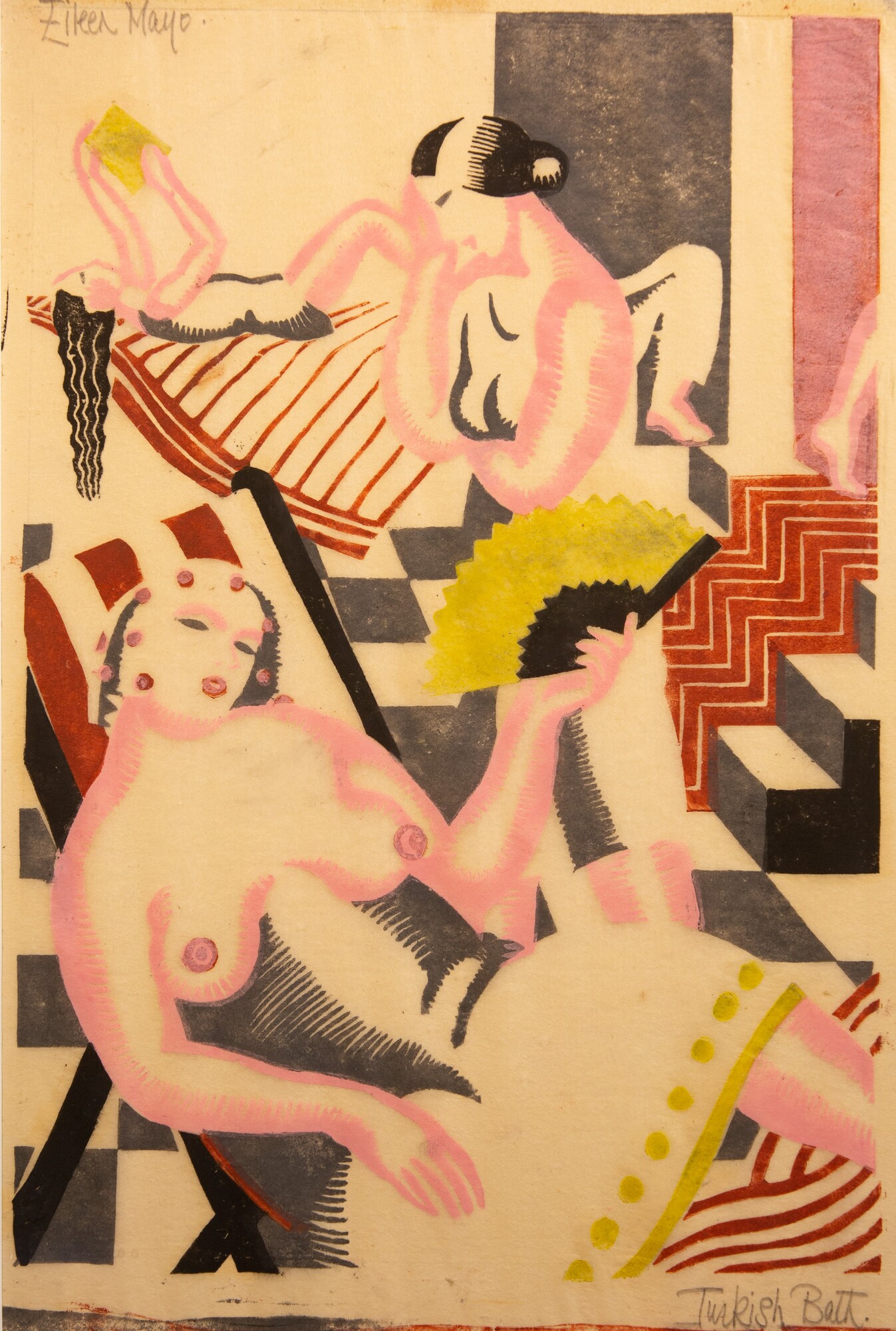 Eileen Mayo, Turkish Bath, 1930, 4 block print on paper. Private collection. Photograph by James Ratchford.