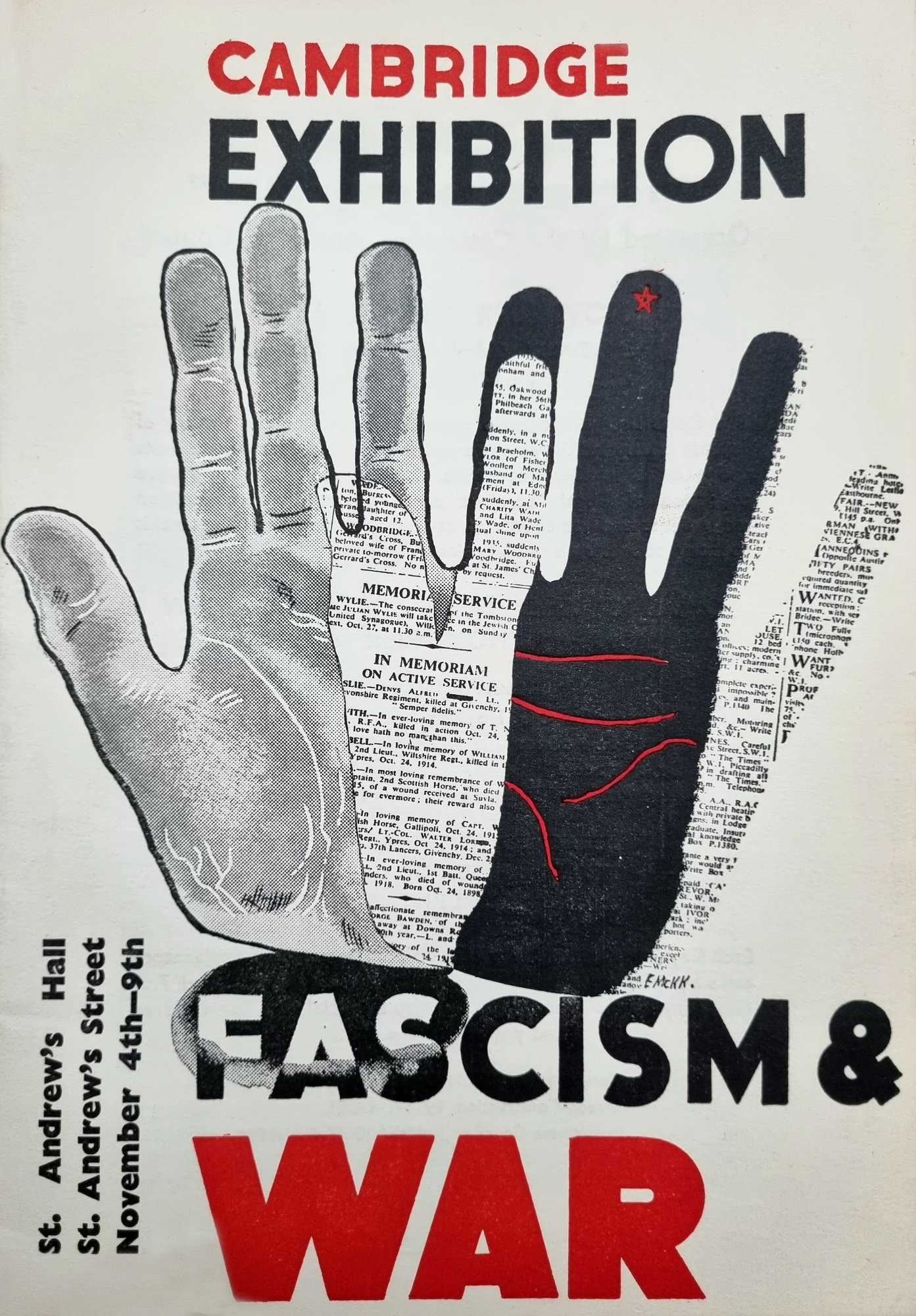 Edward McKnight Kauffer, Design for Cambridge Exhibition Against War and Fascism, 1935.