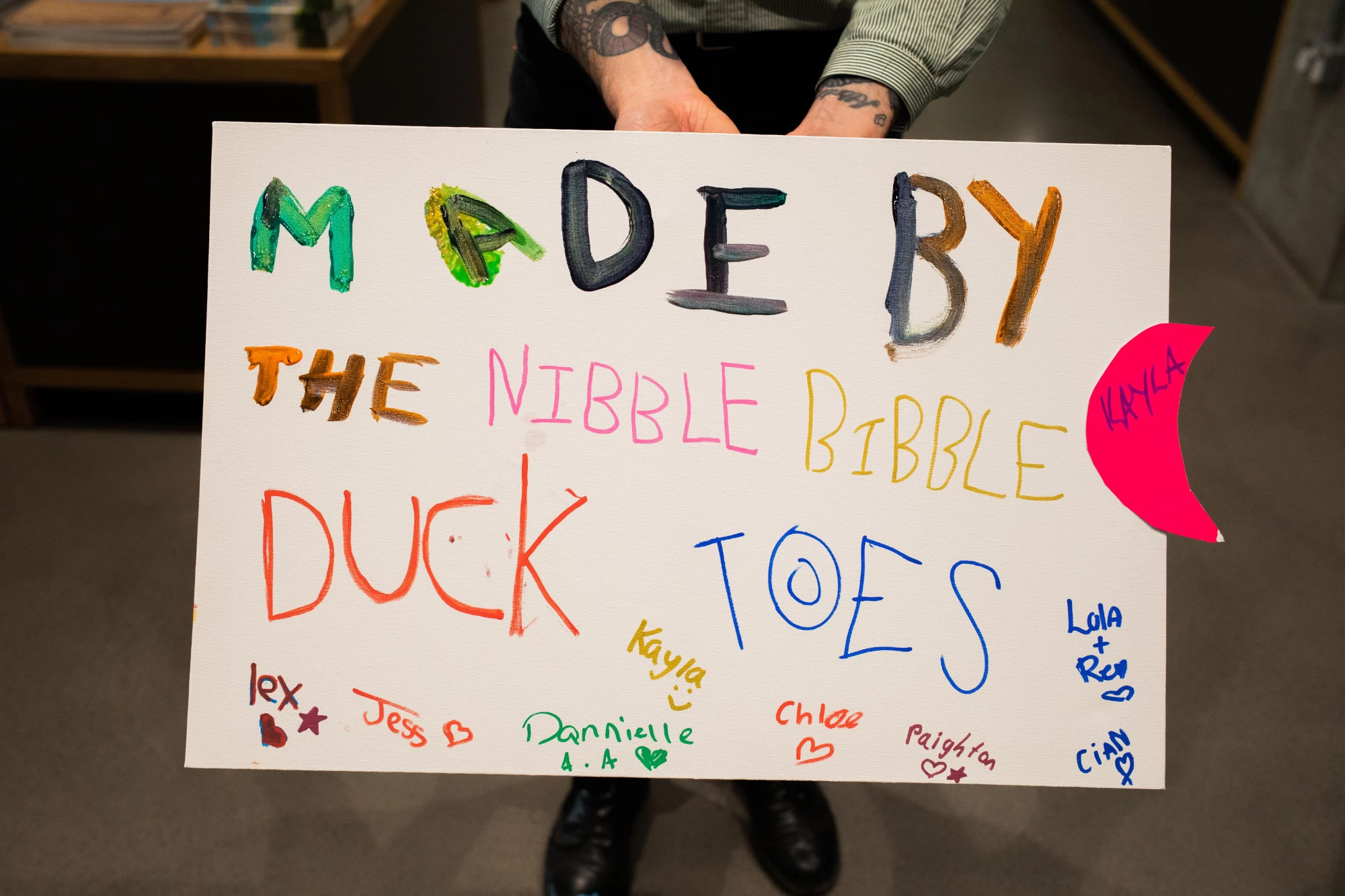 The self-titled Nibble Bibble Duck Toes are a collective of year nine students from the Turing School exploring creative thinking and making in the lead up to Turner Prize 2023 at Towner. They are supported by artist Richard Phoenix.