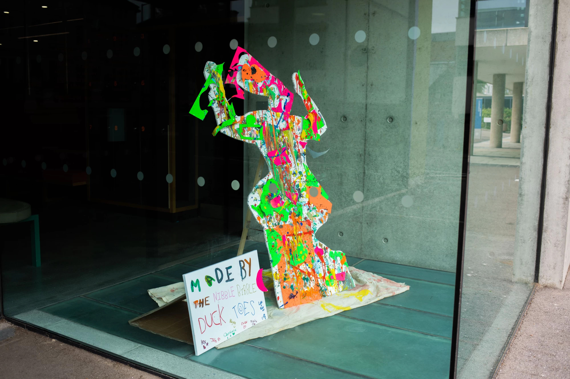 This artwork by the self-titled Nibble Bibble Duck Toes (An arts collective of Turing School pupils) was made during workshops responding to the Turner Prize 2023 with artist Richard Phoenix